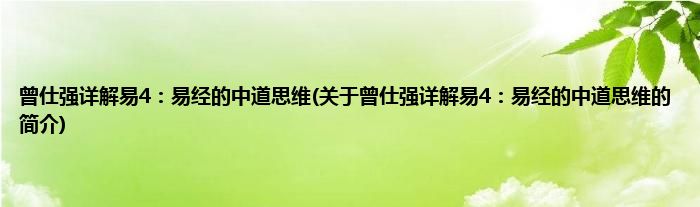 本文关于曾仕强详解易4:易经的中道思维的简介就讲解完毕,希望对大家有所帮助。