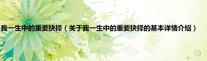 本文关于我一生中的重要抉择的基本详情介绍就讲解完毕,希望对大家有所帮助。