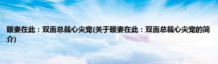 本文关于暖妻在此:双面总裁心尖宠的简介就讲解完毕,希望对大家有所帮助。