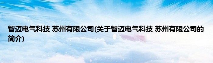 本文关于智迈电气科技 苏州有限公司的简介就讲解完毕,希望对大家有所帮助。