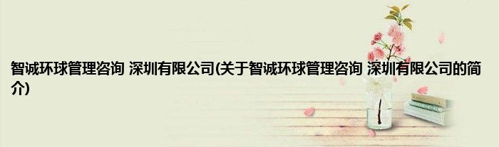 大家好,智诚环球管理咨询 深圳有限公司,关于智诚环球管理咨询 深圳有限公司的简介很多人还不知道,现在让我们一起来看看吧!