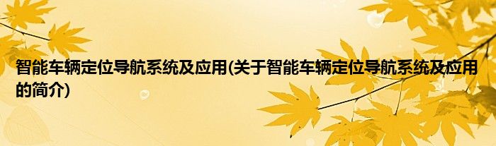 本文关于智能车辆定位导航系统及应用的简介就讲解完毕,希望对大家有所帮助。