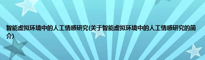 大家好,智能虚拟环境中的人工情感研究,关于智能虚拟环境中的人工情感研究的简介很多人还不知道,现在让我们一起来看看吧!
