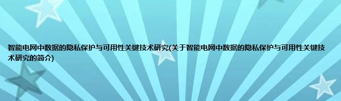 智能电网中数据的隐私保护与可用性关键技术研究(关于智能电网中数据的隐私保护与可用性关键技术研究的简介)