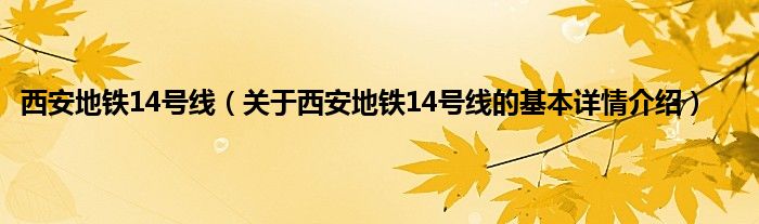 本文关于西安地铁14号线的基本详情介绍就讲解完毕,希望对大家有所帮助。