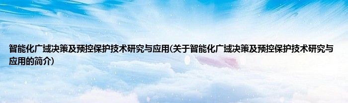 本文关于智能化广域决策及预控保护技术研究与应用的简介就讲解完毕,希望对大家有所帮助。