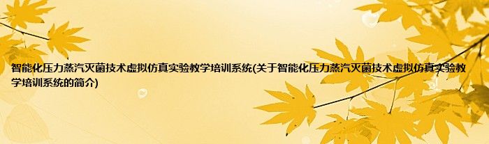 本文关于智能化压力蒸汽灭菌技术虚拟仿真实验教学培训系统的简介就讲解完毕,希望对大家有所帮助。