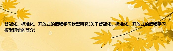 大家好,智能化、标准化、开放式的远程学习模型研究,关于智能化、标准化、开放式的远程学习模型研究的简介很多人还不知道,现在让我们一起来看看吧!