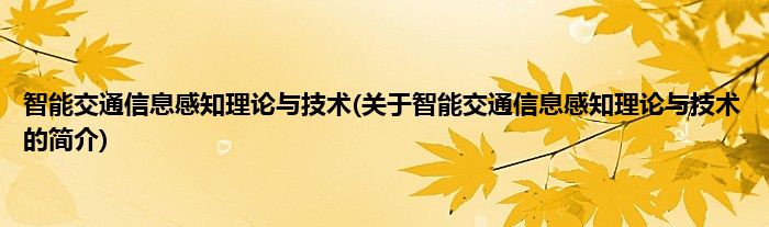 智能交通信息感知理论与技术(关于智能交通信息感知理论与技术的简介)