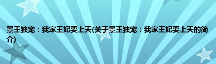 大家好,景王独宠:我家王妃要上天,关于景王独宠:我家王妃要上天的简介很多人还不知道,现在让我们一起来看看吧!