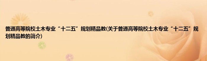 本文关于普通高等院校土木专业“十二五”规划精品教的简介就讲解完毕,希望对大家有所帮助。