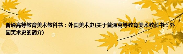 本文关于普通高等教育美术教科书:外国美术史的简介就讲解完毕,希望对大家有所帮助。