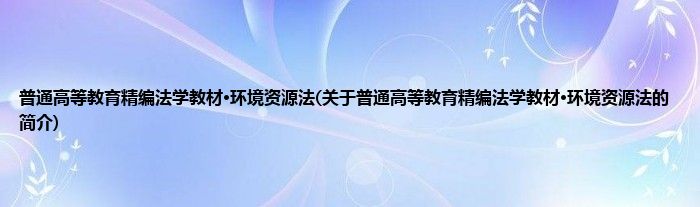 本文关于普通高等教育精编法学教材·环境资源法的简介就讲解完毕,希望对大家有所帮助。