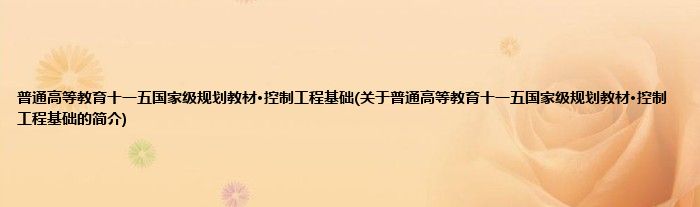 本文关于普通高等教育十一五国家级规划教材·控制工程基础的简介就讲解完毕,希望对大家有所帮助。