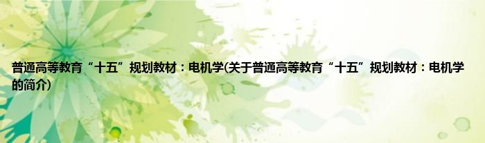 大家好,普通高等教育“十五”规划教材:电机学,关于普通高等教育“十五”规划教材:电机学的简介很多人还不知道,现在让我们一起来看看吧!
