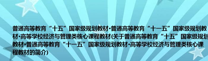 本文关于普通高等教育“十五”国家级规划教材·普通高等教育“十一五”国家级规划教材·高等学校经济与管理类核心课程教材的简介就讲解完毕,希望对大家有所帮助。