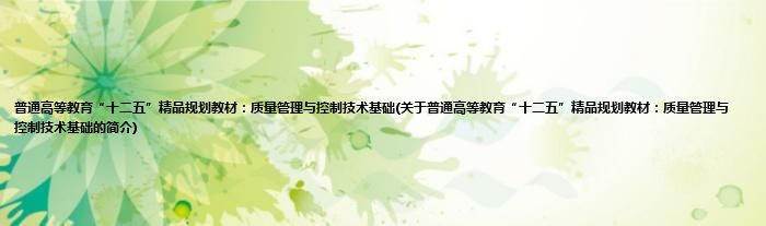 本文关于普通高等教育“十二五”精品规划教材:质量管理与控制技术基础的简介就讲解完毕,希望对大家有所帮助。