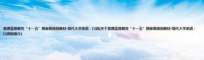 4、《普通高等教育"十一五"国家级规划教材·现代大学英语:口语》为《现代大学英语》系列的口语教材第3册,供大学英语专业本科一、二年级学生及水平相当的学习者使用。
