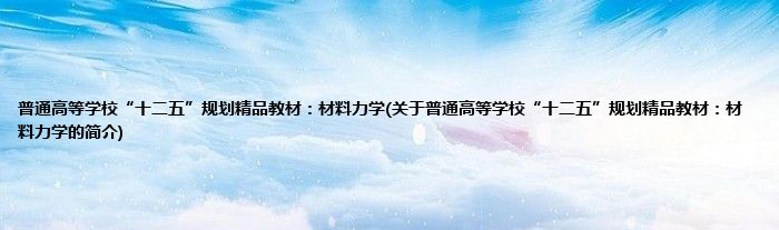 本文关于普通高等学校“十二五”规划精品教材:材料力学的简介就讲解完毕,希望对大家有所帮助。