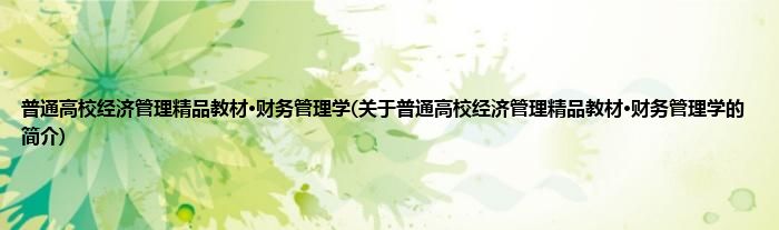 1、 《普通高校经济管理精品教材?财务管理学》是关于介绍“财务管理学”的教学用书,全书以企业价值最大化为目标,以筹资、投资和收益管理为主线,系统介绍了财务管理基本理论和方法。