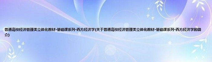 本文关于普通高校经济管理类立体化教材·基础课系列·西方经济学的简介就讲解完毕,希望对大家有所帮助。