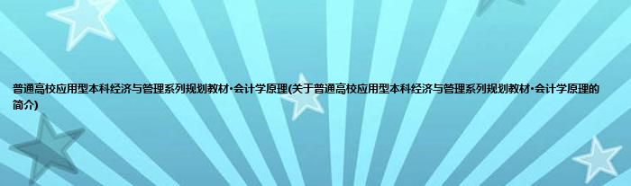 本文关于普通高校应用型本科经济与管理系列规划教材·会计学原理的简介就讲解完毕,希望对大家有所帮助。