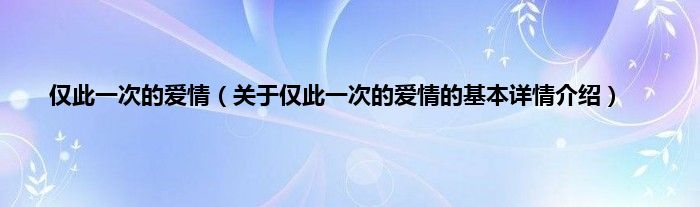 本文关于仅此一次的爱情的基本详情介绍就讲解完毕,希望对大家有所帮助。