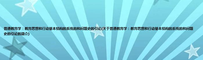 本文关于普通教育学:教育思想和行动基本结构的系统的和问题史的引论的简介就讲解完毕,希望对大家有所帮助。
