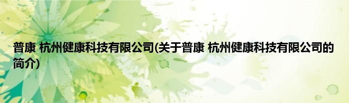 本文关于普康 杭州健康科技有限公司的简介就讲解完毕,希望对大家有所帮助。