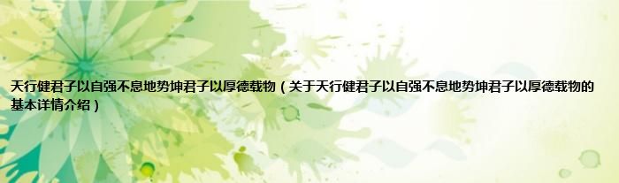本文关于天行健君子以自强不息地势坤君子以厚德载物的基本详情介绍就讲解完毕,希望对大家有所帮助。