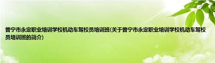 本文关于普宁市永定职业培训学校机动车驾校员培训班的简介就讲解完毕,希望对大家有所帮助。