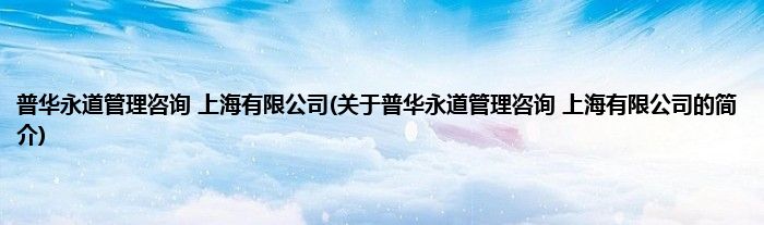 本文关于普华永道管理咨询 上海有限公司的简介就讲解完毕,希望对大家有所帮助。