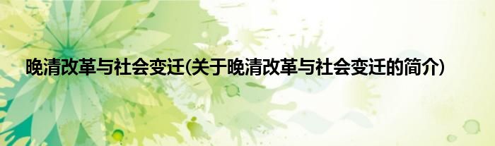 本文关于晚清改革与社会变迁的简介就讲解完毕,希望对大家有所帮助。