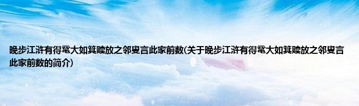 大家好,晚步江浒有得鼋大如箕赎放之邻叟言此家前数,关于晚步江浒有得鼋大如箕赎放之邻叟言此家前数的简介很多人还不知道,现在让我们一起来看看吧!