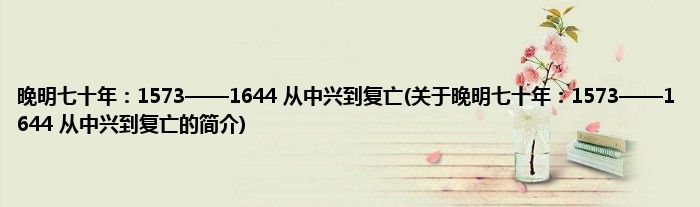 本文关于晚明七十年:1573——1644,从中兴到复亡的简介就讲解完毕,希望对大家有所帮助。