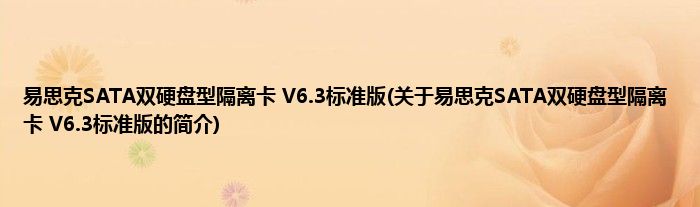 易思克SATA双硬盘型隔离卡 V6.3标准版(关于易思克SATA双硬盘型隔离卡 V6.3标准版的简介)