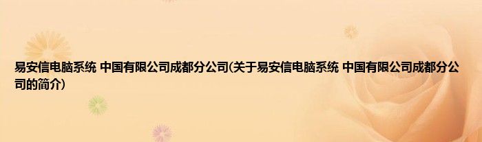 大家好,易安信电脑系统 中国有限公司成都分公司,关于易安信电脑系统 中国有限公司成都分公司的简介很多人还不知道,现在让我们一起来看看吧!