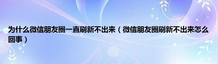 大家好,精选小编来为大家解答以上问题。为什么微信朋友圈一直刷新不出来,微信朋友圈刷新不出来怎么回事很多人还不知道,现在让我们一起来看看吧!