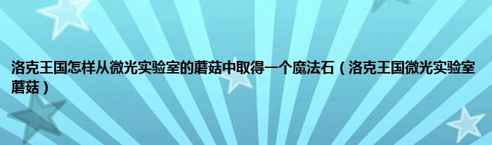 洛克王国怎样从微光实验室的蘑菇中取得一个魔法石(洛克王国微光实验室蘑菇)