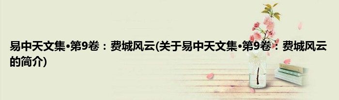 1、 《易中天文集·第9卷:费城风云》是2011年5月上海文艺出版社出版的图书,作者是易中天。