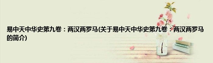 本文关于易中天中华史第九卷:两汉两罗马的简介就讲解完毕,希望对大家有所帮助。
