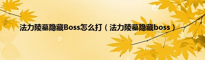 大家好,精选小编来为大家解答以上问题。法力陵墓隐藏Boss怎么打,法力陵墓隐藏boss很多人还不知道,现在让我们一起来看看吧!