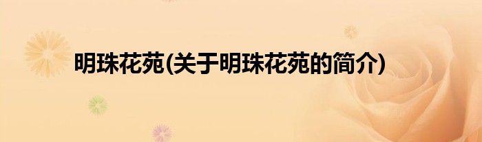 大家好,明珠花苑,关于明珠花苑的简介很多人还不知道,现在让我们一起来看看吧!