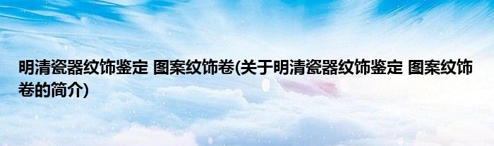 1、 《明清瓷器纹饰鉴定(图案纹饰卷)》是2002年华龄出版社出版的图书。
