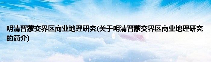本文关于明清晋蒙交界区商业地理研究的简介就讲解完毕,希望对大家有所帮助。
