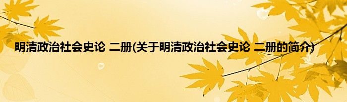 本文关于明清政治社会史论 二册的简介就讲解完毕,希望对大家有所帮助。