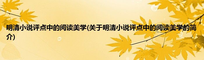 大家好,明清小说评点中的阅读美学,关于明清小说评点中的阅读美学的简介很多人还不知道,现在让我们一起来看看吧!