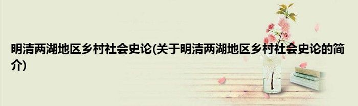 本文关于明清两湖地区乡村社会史论的简介就讲解完毕,希望对大家有所帮助。