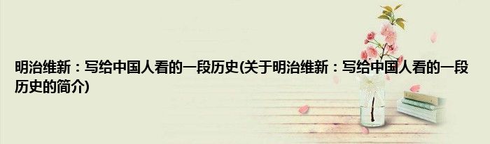 本文关于明治维新:写给中国人看的一段历史的简介就讲解完毕,希望对大家有所帮助。
