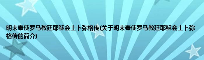 大家好,明末奉使罗马教廷耶稣会士卜弥格传,关于明末奉使罗马教廷耶稣会士卜弥格传的简介很多人还不知道,现在让我们一起来看看吧!